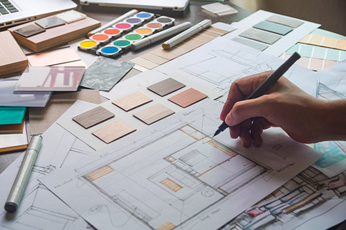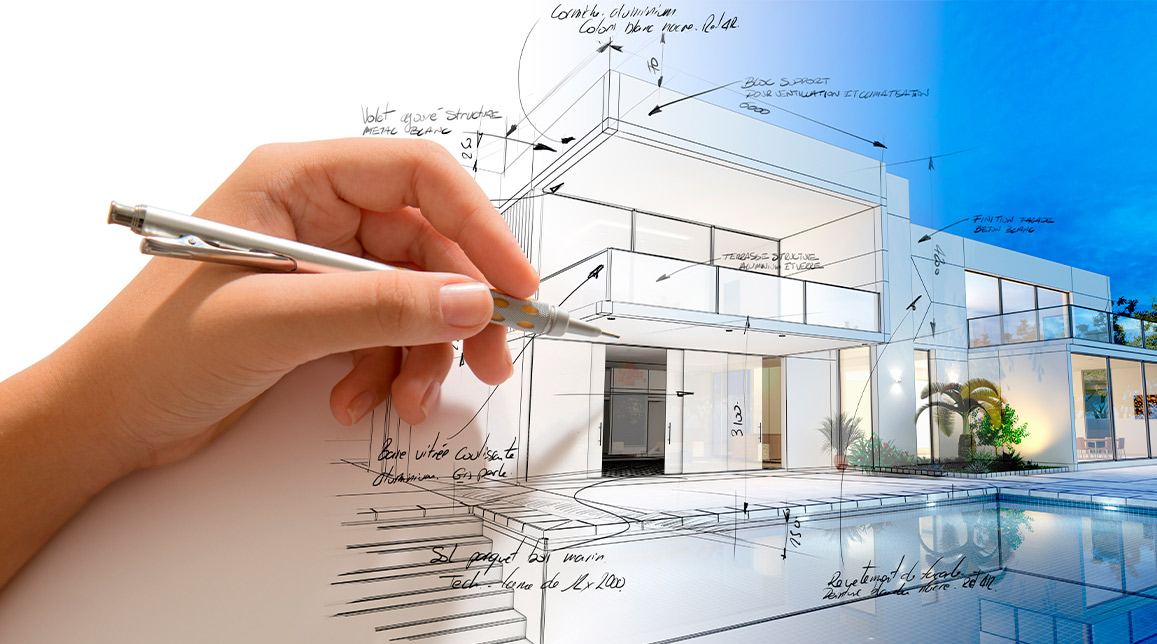 A person sketching a house design with a pencil, illustrating the planning phase of commercial construction in McAllen.
