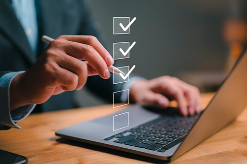 A businessman using a laptop to check a checklist, highlighting the need for trusted commercial construction services in McAllen.